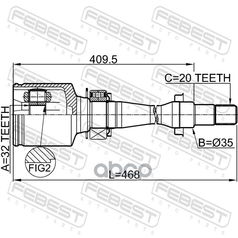 Бренд: Febest, артикул: 0111CT220RH, Шрус внутренний правый 32x35x20 TOYOTA AVENSIS AT22#,AZT220,CDT220,CT220,ST220,ZZT22# 1997.10-2003.01 [EU]. |