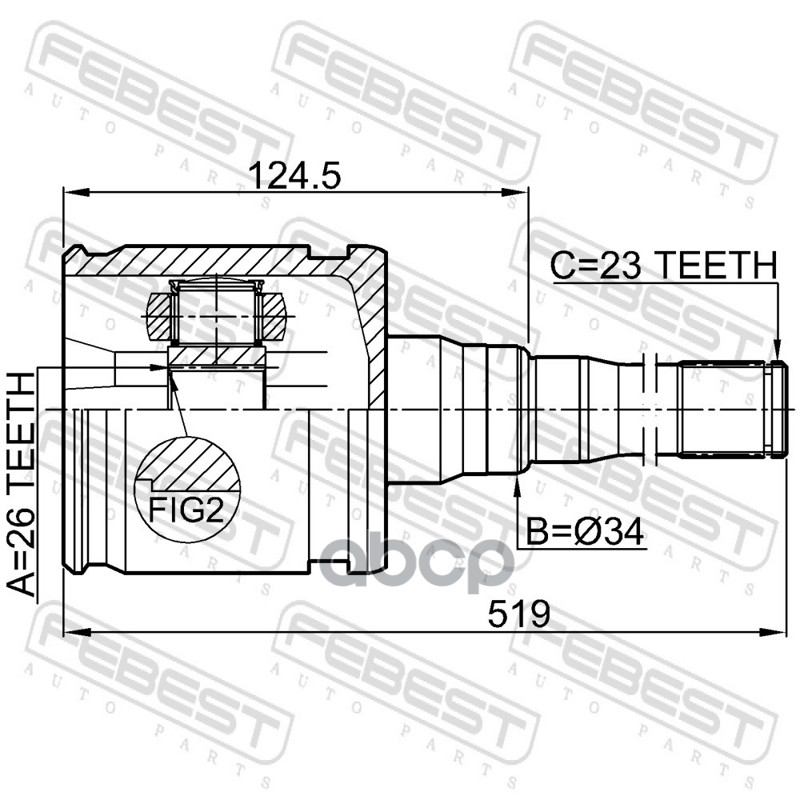 Бренд: Febest, артикул: 0111MCX20RH, ШРУС внутренний правый 26x28x23 0111-MCX20RH. |