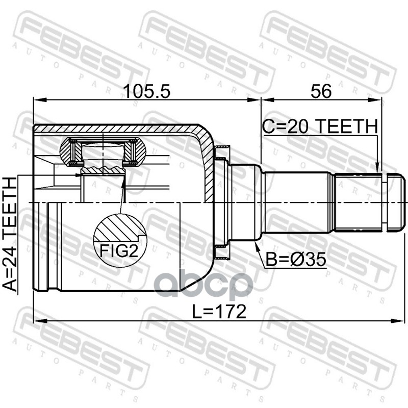 Бренд: Febest, артикул: 0111NDE120LH, Шрус внутренний левый 24x35x20 TOYOTA COROLLA SED/WG (JPP) CDE120,NDE120,ZZE12# 2001.10-2006.10 [EU]. |