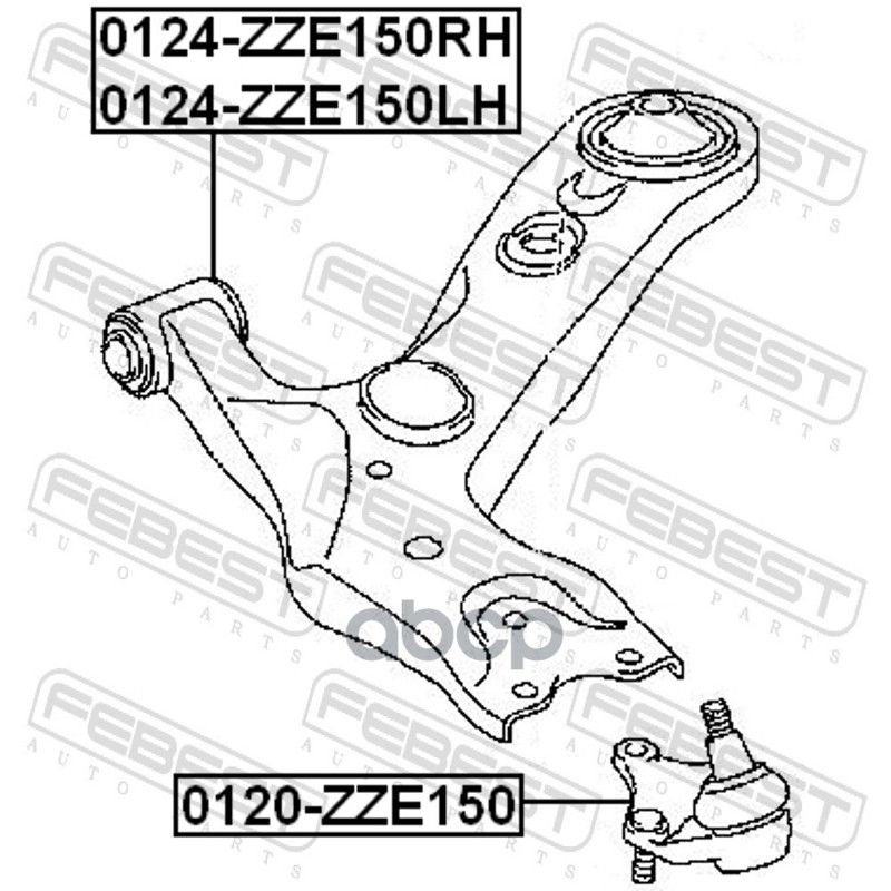 Бренд: Febest, артикул: 0124ZZE150RH, Рычаг передний с шаровой Febest 0124-ZZE150RH.  |