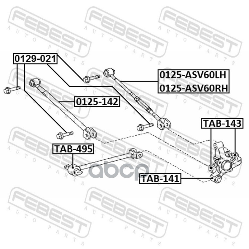 Бренд: Febest, артикул: 0125ASV60RH, рычаг задней подвески поперечный регулируемый прав Lexus ES V6 12>.  |