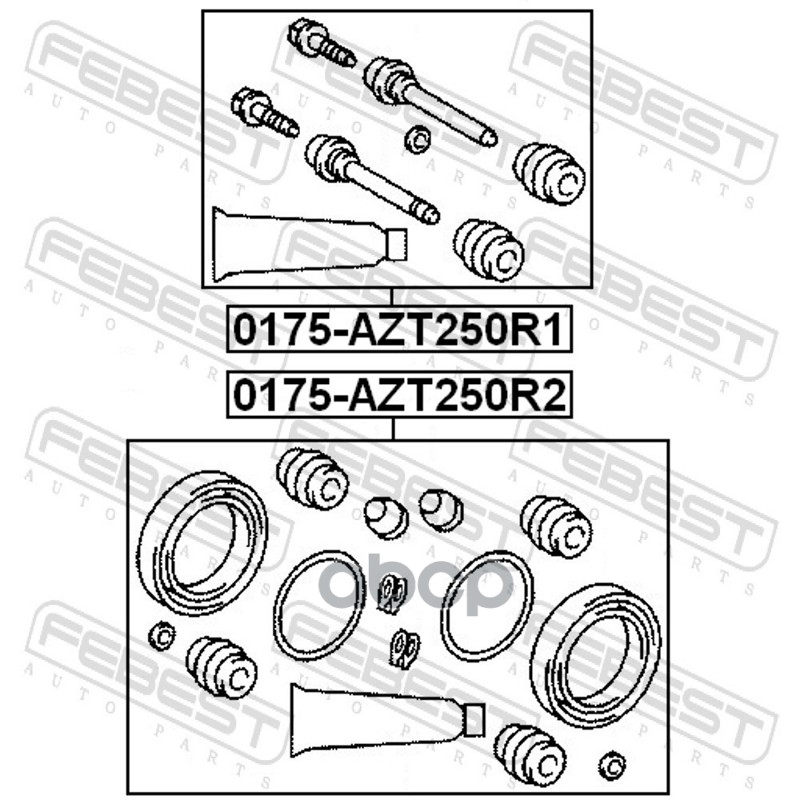 Бренд: Febest, артикул: 0175AZT250R1, Ремкомплект задн тормозного суппорта TOYOTA AVENSIS T25 0175-AZT250R1. |