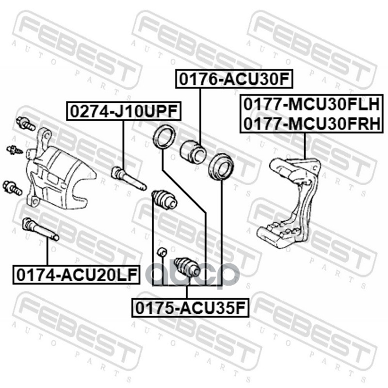 Бренд: Febest, артикул: 0177-MCU30FLH, Суппорт передн левый TOYOTA HARRIER 2003.02-2012.07 0177-MCU30FLH. |