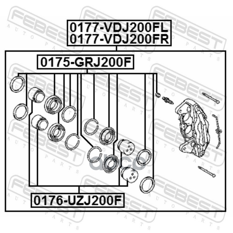 Бренд: Febest, артикул: 0177-VDJ200FL, Суппорт передн левый TOYOTA LAND CRUISER 200 2007- 0177-VDJ200FL. |