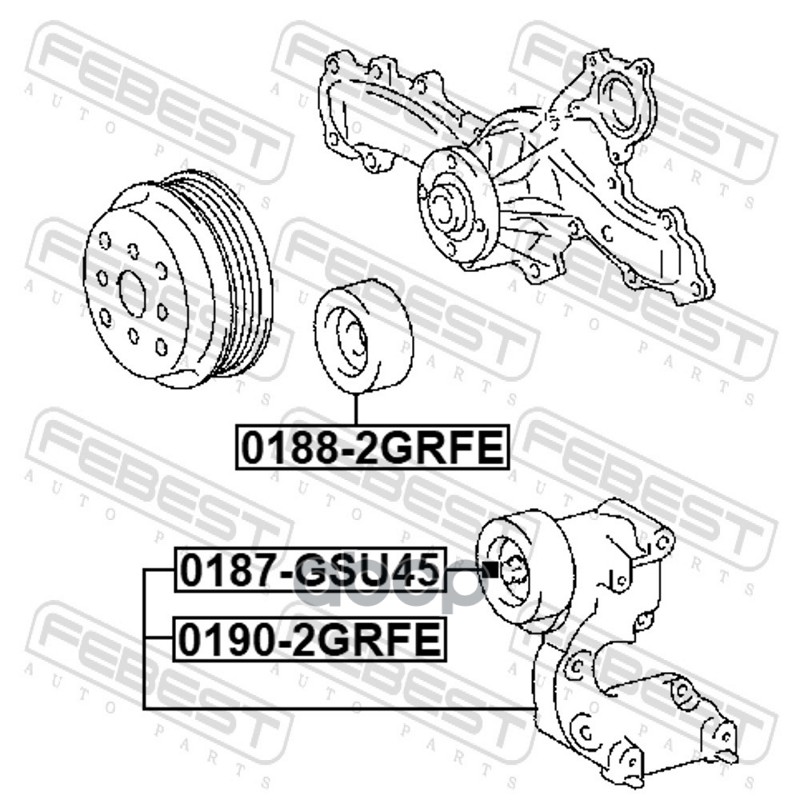 Купить запчасть 01902GRFE Ролик приводного ремня Toyota Camry (V40/V50), Highlander 07- (2GR, 3GR, 4GR) FEBEST (с натяжителем) 16620-31040 A132E6263S; 166200P020; 166200P021; 1662031020; 1662031021; 1662031031; 1662031040; 1662031050; 1662031051 с доставкой в Эль-Монте.
