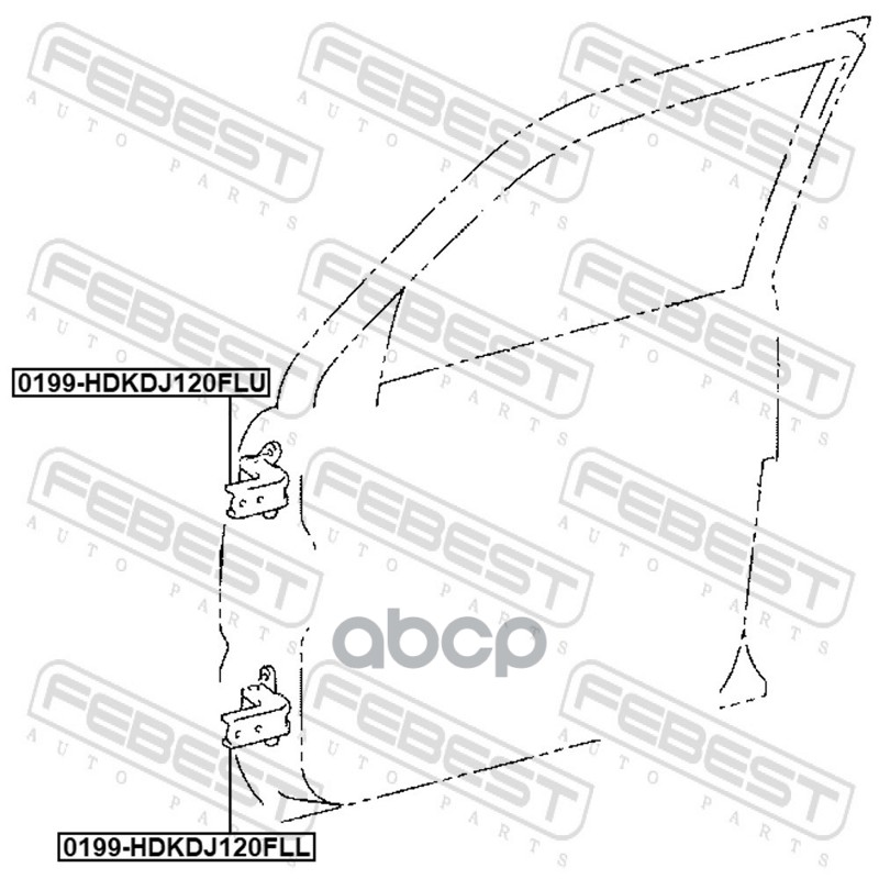 Бренд: Febest, артикул: 0199HDKDJ120FLU, ПЕТЛЯ ПЕРЕДНЕЙ ЛЕВОЙ ДВЕРИ ВЕРХНЯЯ 0199-HDKDJ120FLU. |