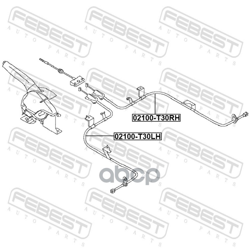 Бренд: Febest, артикул: 02100T30RH, Трос ручного тормоза правый. |
