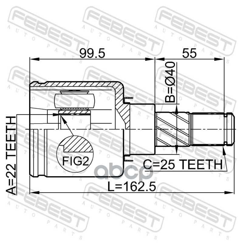 Бренд: Febest, артикул: 0211B10ATRH, ШРУС внутренний правый к-кт 22x40x25 Nissan Almera 06-12. |