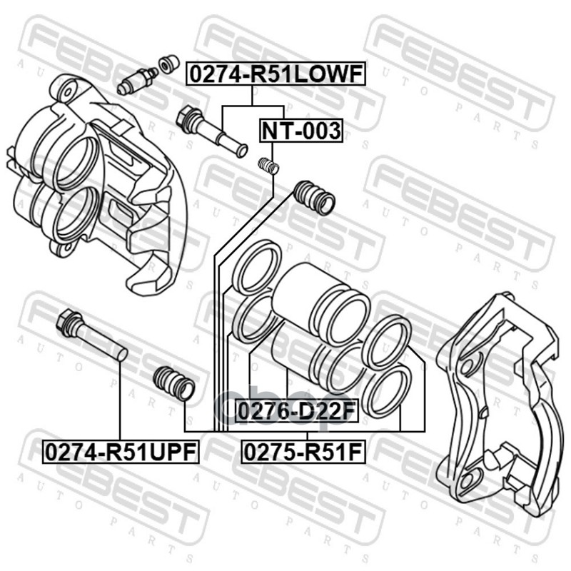 Бренд: Febest, артикул: 0274R51LOWF, Втулка направляющая суппорта передн нижняя NISSAN PATHFINDER 05-14 0274-R51LOWF. |