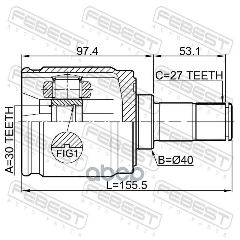 Бренд: Febest, артикул: 0311-CRVATLH, ШРУС внутренний левый 30X40X27 HONDA CR-V 2011- 0311-CRVATLH. |