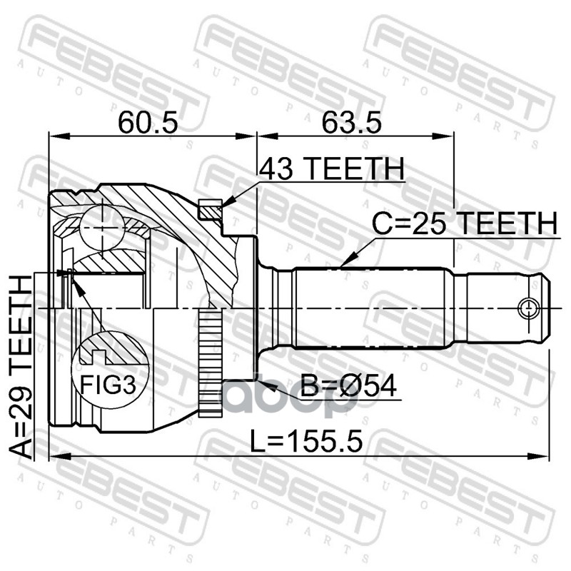 Бренд: Febest, артикул: 0410DA2A43, ШРУС наруж.ком/кт [ABS] 43z MITSUBISHI CARISMA DA 1995-2003. |
