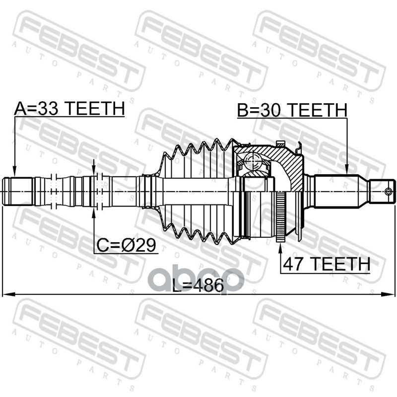 Бренд: Febest, артикул: 0414KB4A47L, ШРУС 0414-KB4A47L. |