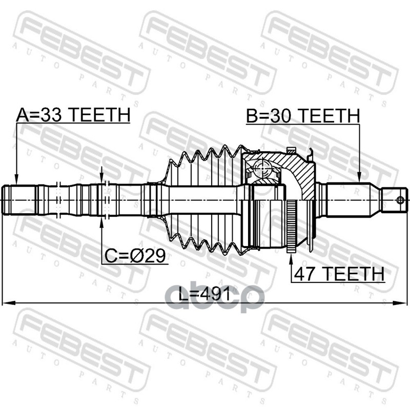 Бренд: Febest, артикул: 0414KB4A47R, ВАЛ ПРИВОДНОЙ. |