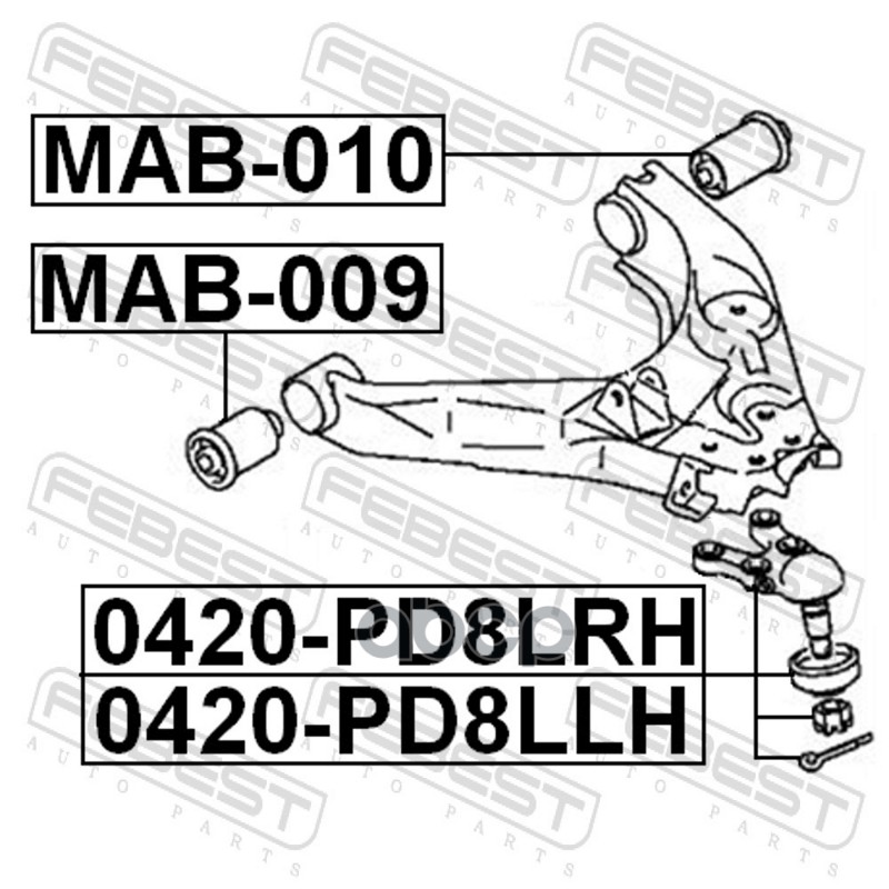 Бренд: Febest, артикул: 0420PD8LRH, Опора шаровая передняя нижняя правая. |