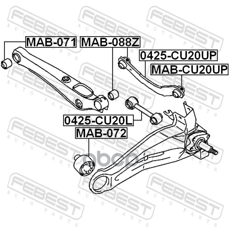 Бренд: Febest, артикул: 0425CU20L, Тяга задн поперечная нижняя MITSUBISHI LANCER (CS) 0425-CU20L. |