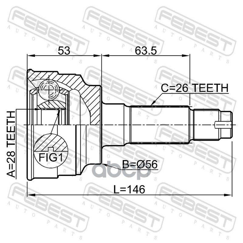 ШРУС Mazda 323 VI 98-, МКПП наружный Febest FA52-22-510 FA5022610A; FA5022610B; FA502540XA; FA502540XB; FA502560XC; FA5222510; FA5222510A; FA522550XA; FA5422510; FA5422510A; FD5522510; FD5522610