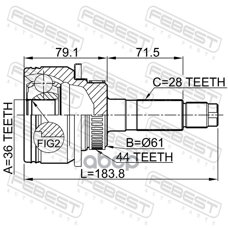 Бренд: Febest, артикул: 0510BT50A44, Шрус наружный 36x61x28. |