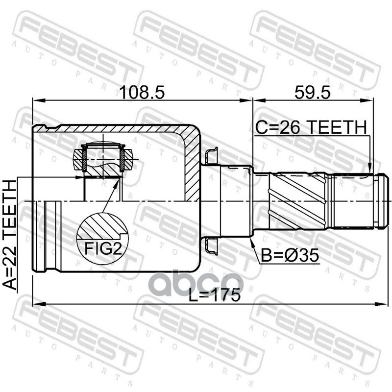 Бренд: Febest, артикул: 0511BMATLH, ШРУС внутренний L 22x35x26 MAZDA 3 BM 2013-2016 [GEN]. |