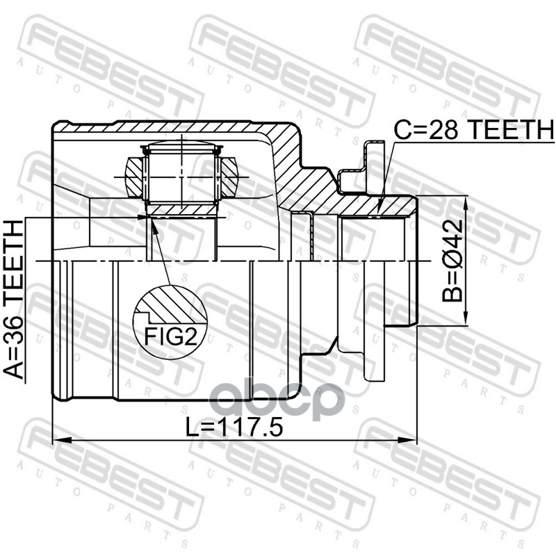 Бренд: Febest, артикул: 0511BT50LH, ШРУС внутренний левый к-кт Ford Ranger 06-12, Mazda BT-50 06-11. |