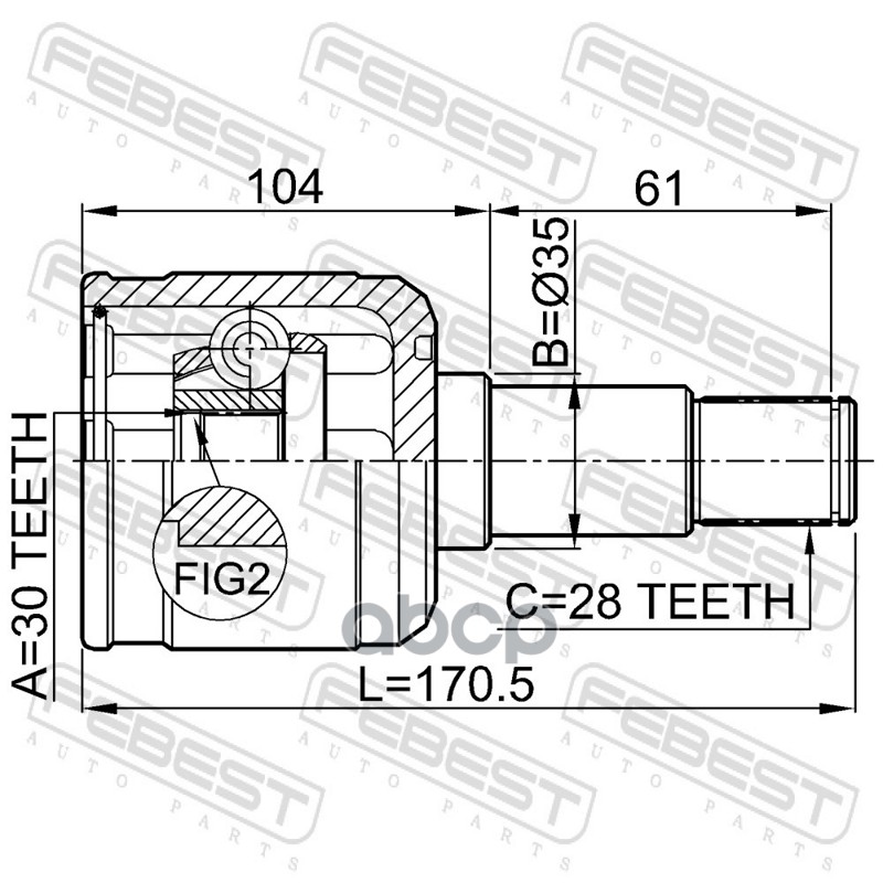 Наименование: ШРУС ВНУТРЕННИЙ ЛЕВЫЙ 30x35x28 MAZDA 626 GF 1997 2002 FEBEST