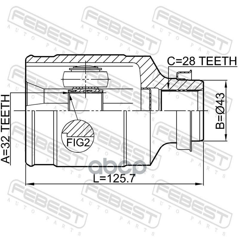 Бренд: Febest, артикул: 0511GHMTRH, Шрус внутренний правый 32x43x28 MAZDA 6 GH 2007-2010 [EU]. |