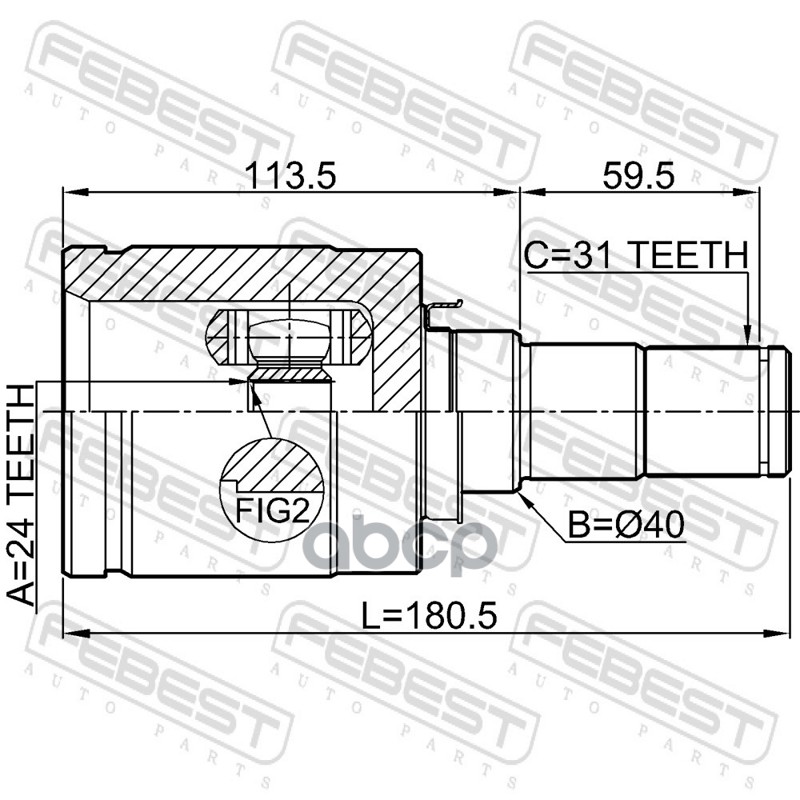 ШРУС MAZDA CX-5 KE 11- внутренний левый 24x40x31 FEBEST #FTB6-25-60X FTB122620