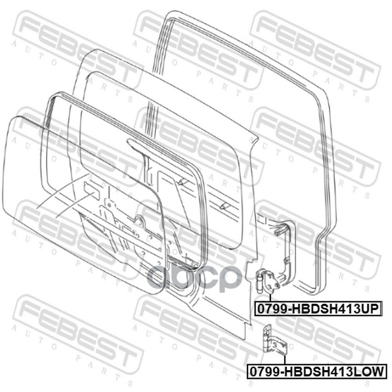 Бренд: Febest, артикул: 0799HBDSH413UP, петля двери багажника Suzuki Jimny. |