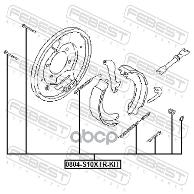 Бренд: Febest, артикул: 0804-S10XTR-KIT, К-кт монтажный барабанных колодок SUBARU FORESTER 2001-2007 0804-S10XTR-KIT. |
