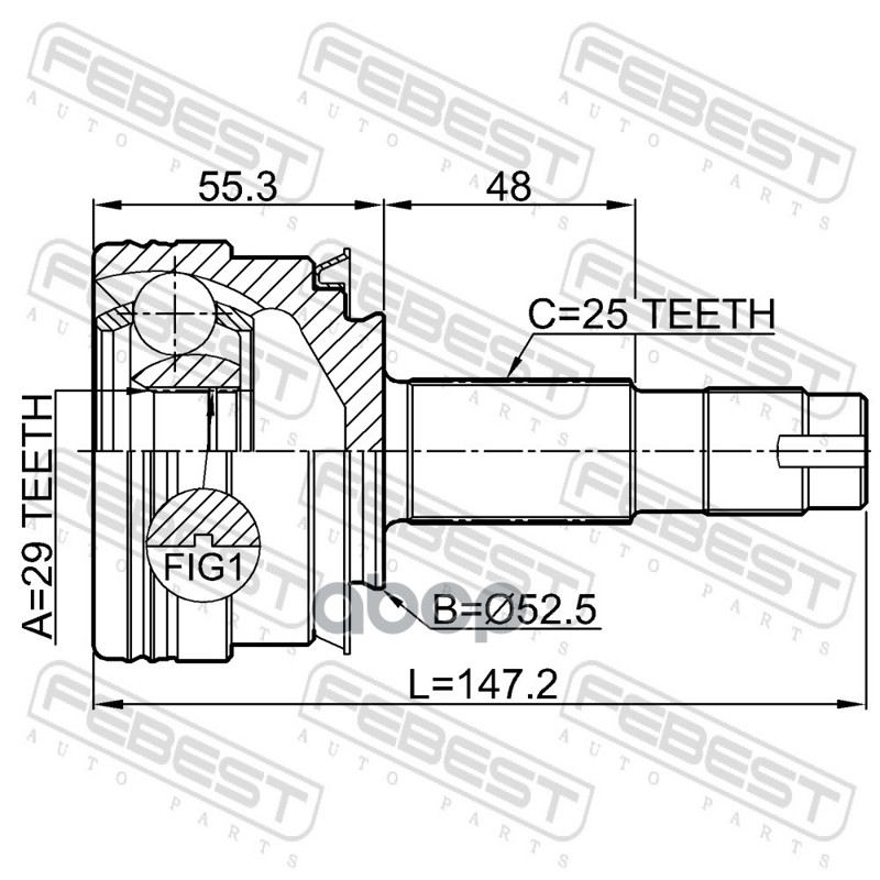 Бренд: Febest, артикул: 1010T300MT, Шрус наружный 29x52.5x25 CHEVROLET AVEO/SONIC 2012- [EU]. |