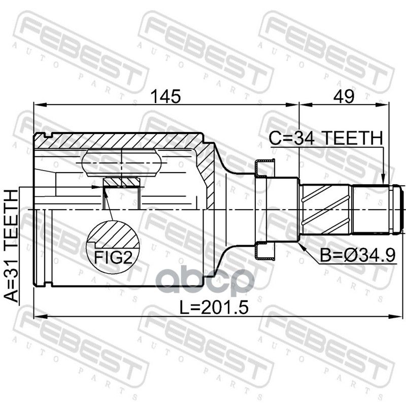 Бренд: Febest, артикул: 1011J300RH, Шрус внутренний правый 31x34.9x34. |