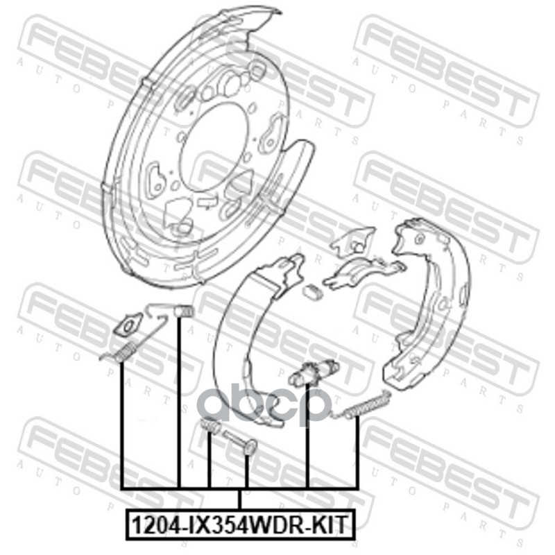 Бренд: Febest, артикул: 1204IX354WDRKIT, Монтажный комплект барабанных колодок. |