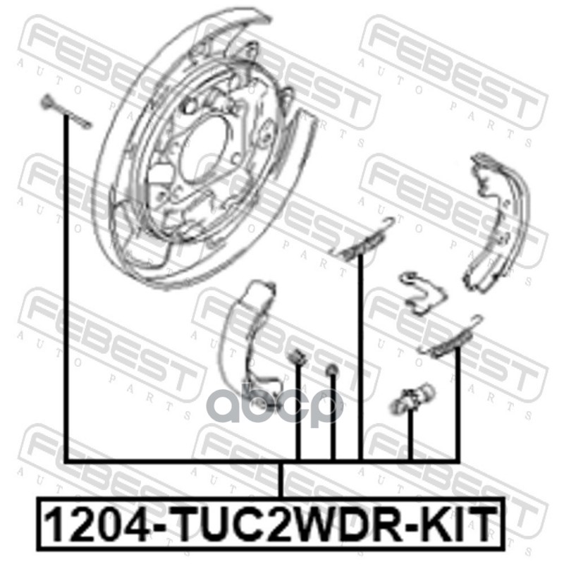 Бренд: Febest, артикул: 1204TUC2WDRKIT, Монтажный комплект барабанных колодок. |