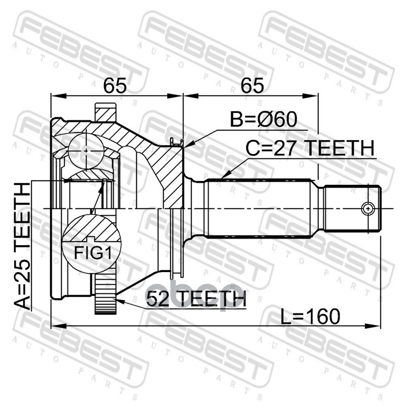 Бренд: Febest, артикул: 1210SFRRA52, Шрус наружный задний 25x58.8x27. |