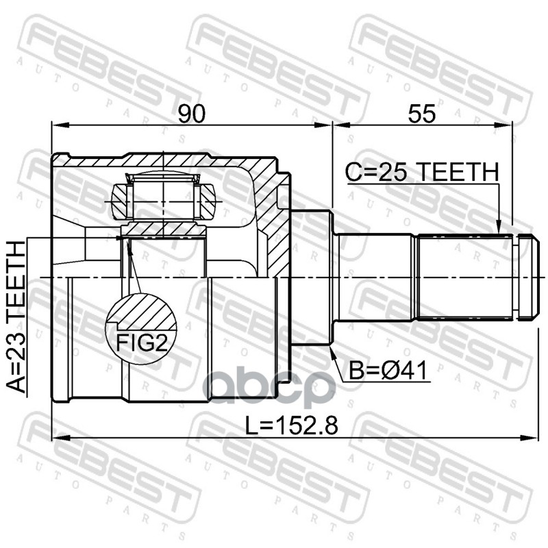Бренд: Febest, артикул: 1211CREMT2WD, ШРУС внутренний L 23x41x25 HYUNDAI Creta 17 2016-2021 [EUROPE + RUSSIA]. |