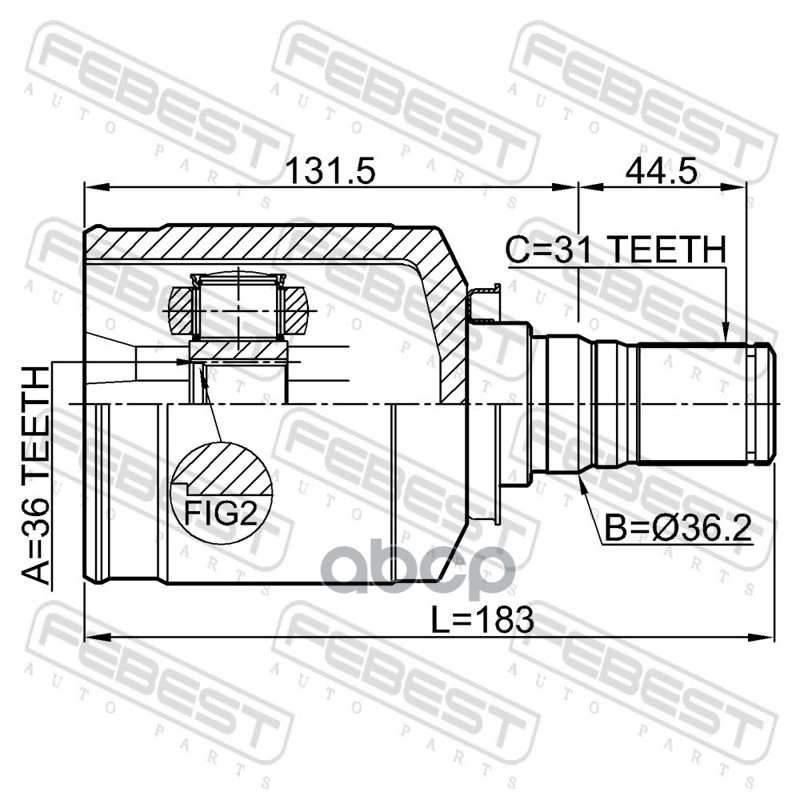 Бренд: Febest, артикул: 1211-IX55LH, ШРУС внутренний левый HYUNDAI IX55 2008-2013 1211-IX55LH. |