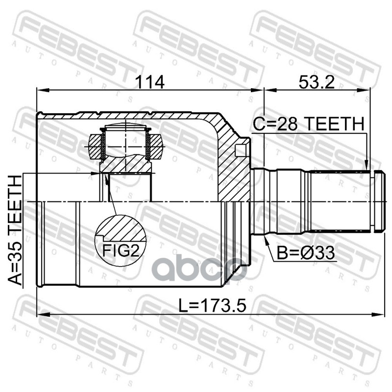 Наименование: ШРУС внутренний левый 35x33x28 HYUNDAI SANTA FE 18 2018-2020 [RUSSIA]