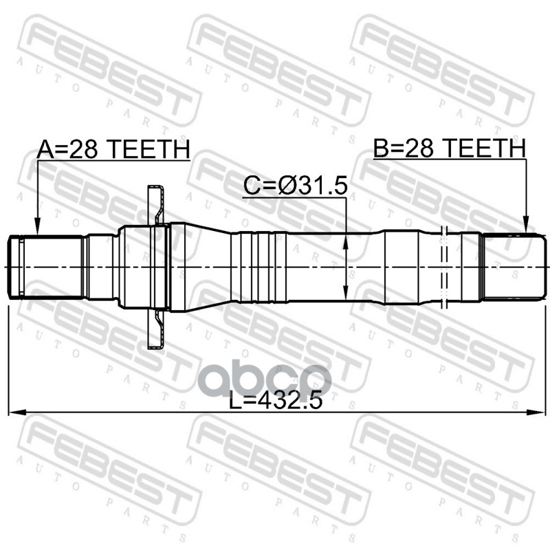Наименование: Полуось R 28x432.5x28 HYUNDAI Santa FE 06 2006- [GEN]