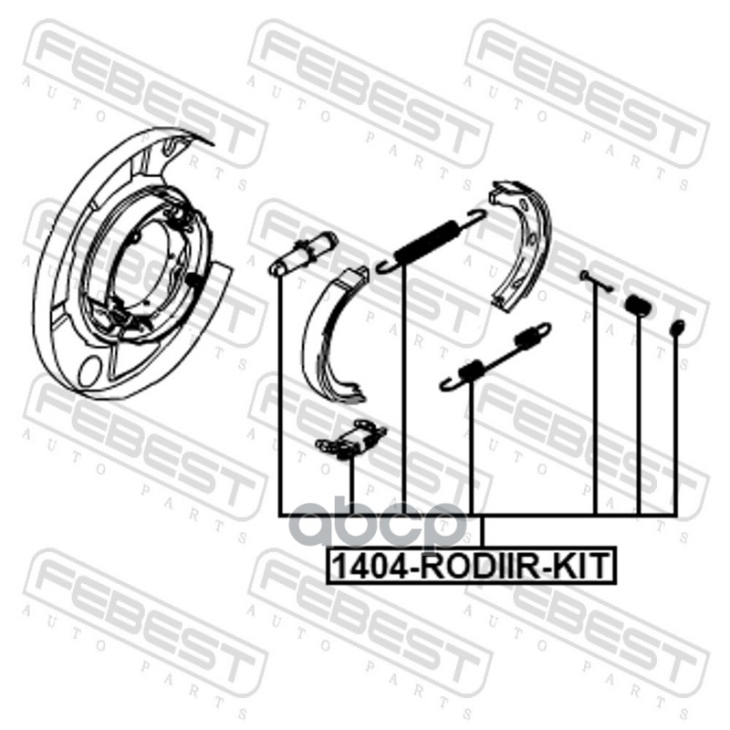 Бренд: Febest, артикул: 1404RODIIRKIT, Монтажный комплект барабанных колодок. |