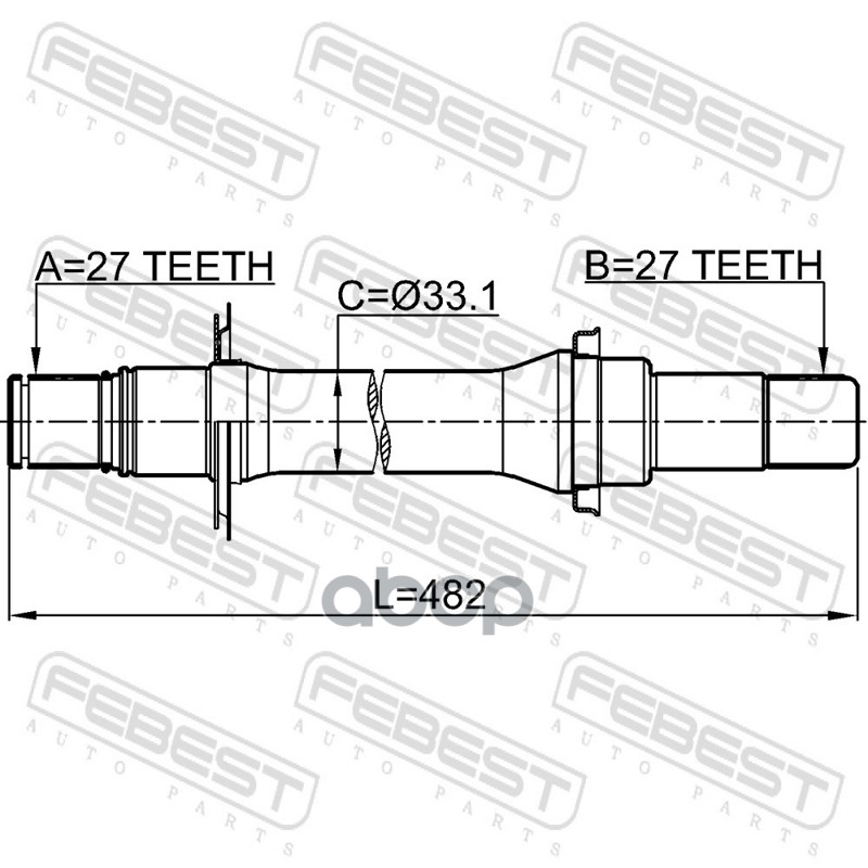 Бренд: Febest, артикул: 1412ACT2WDRH, Полуось правая 27x482.2x27 SSANG YONG NEW ACTYON (KORANDO C) 2010-2013. |