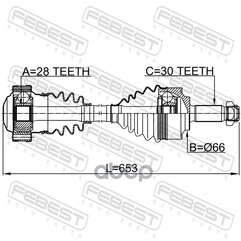 Бренд: Febest, артикул: 1614639646, Привод передний левый/правый 653x30 MERCEDES BENZ KOMBI 639.#. |