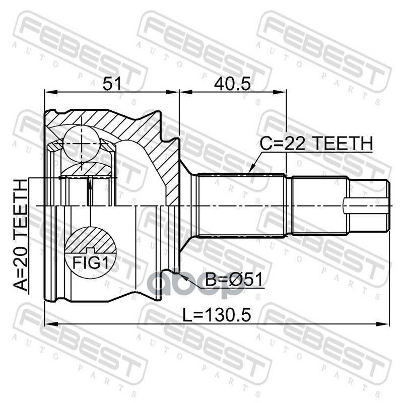 ШРУС Opel Corsa D 06- наружный 20x51x22 FEBEST 1603431 93195147; 1603431