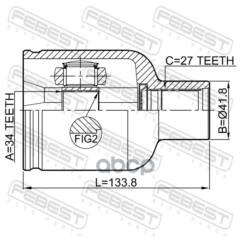 Бренд: Febest, артикул: 1811A22DMRH, Шрус внутренний правый 34x41.8x27. |