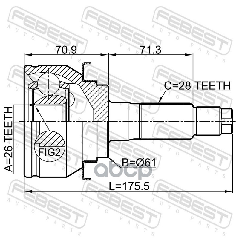 Наименование: ШРУС внешний 26X61X28 FORD RANGER TKE 2011- 2110-TKE