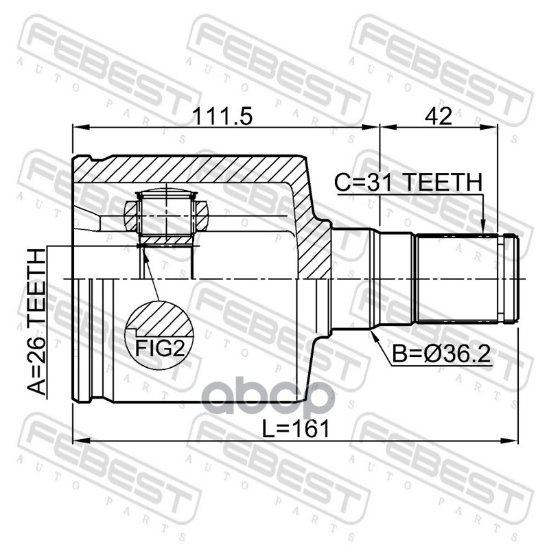 Бренд: Febest, артикул: 2111CA223LH, Шрус внутренний левый 26х36.2х31 Ford Mondeo CA2 07>. |