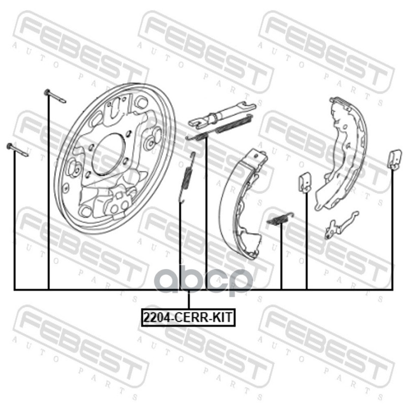 Бренд: Febest, артикул: 2204CERRKIT, Монтажный комплект барабанных колодок. |