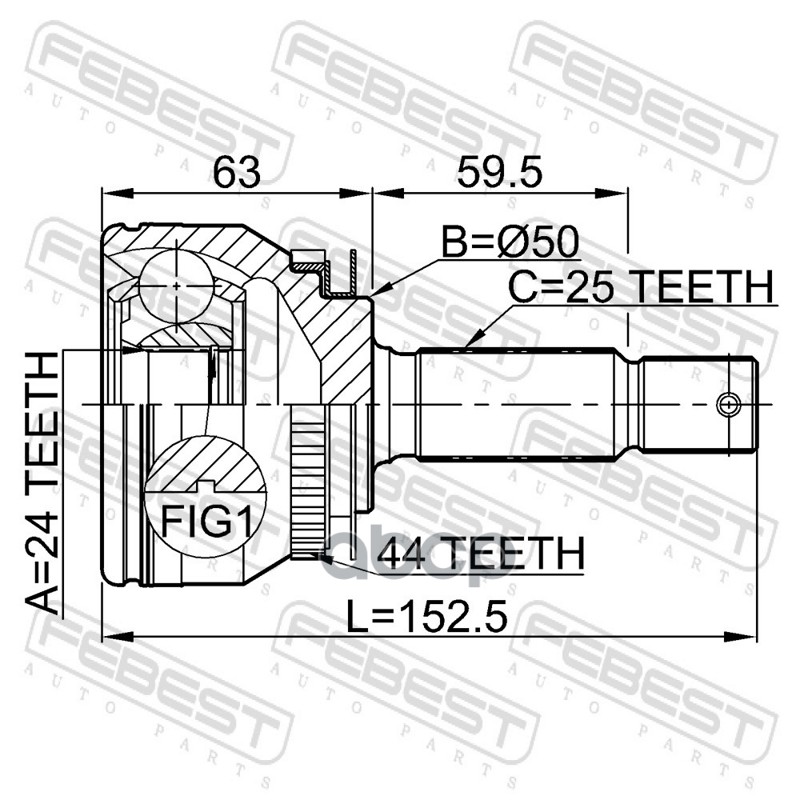 Бренд: Febest, артикул: 2210CER20A44, Шрус наружный 24x50x25 | перед прав/лев | KIASPECTRA 04 (5DOOR>PUERTO RICO), K3 16 (VIETNAM), CERATO, FORTE, CERA. |