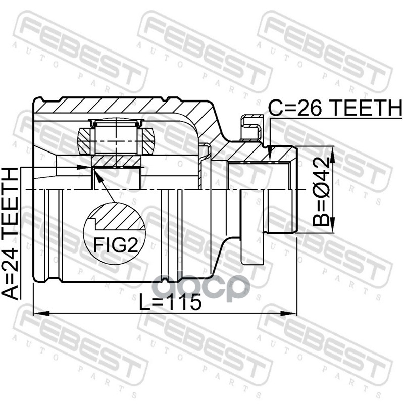 Бренд: Febest, артикул: 2211NS20RH, Шрус внутренний правый 24x42x26. |