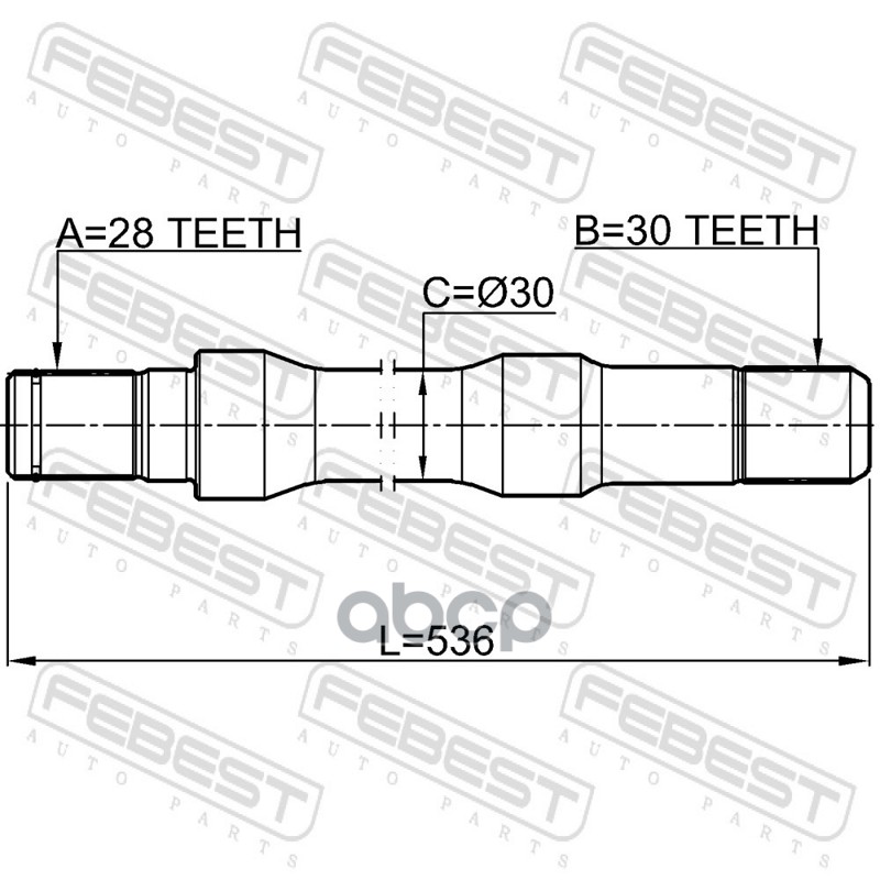 Бренд: Febest, артикул: 2212K2500RH, ПОЛУОСЬ ПРАВАЯ 28X537X30 2212-K2500RH. |