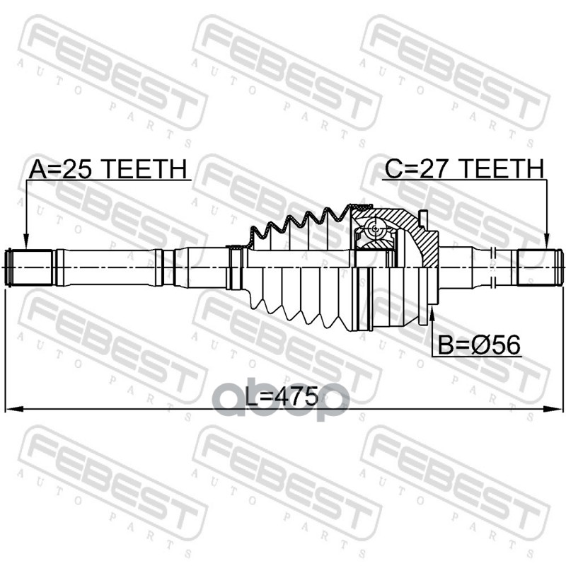 Наименование: Шрус наружный с валом 25x476x27