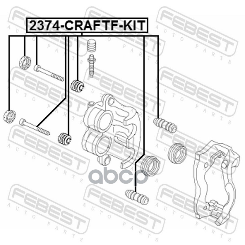 Бренд: Febest, артикул: 2374CRAFTFKIT, Втулка направляющая суппорта тормозного переднего, комплект VW Crafter 06-15. |